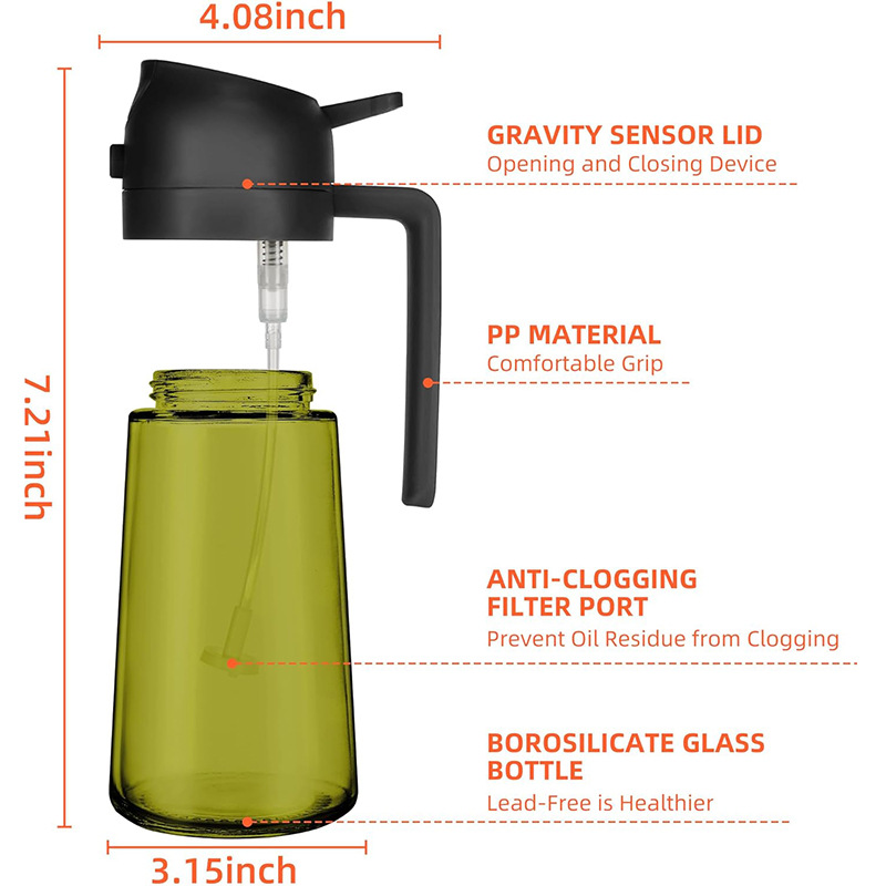 🍾 Dual-Function Design – Switch between fine mist spraying and steady pouring, perfect for salad dressing, grilling, roasting, baking, frying, or air fryer use.
