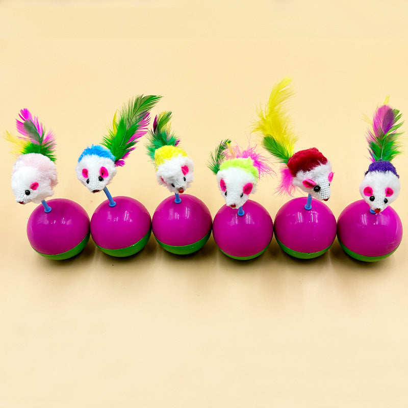 Cat Teaser Tumbler Mouse Toy - Faux Feather Mouse Ball, Random Colors for Kittens & Dogs