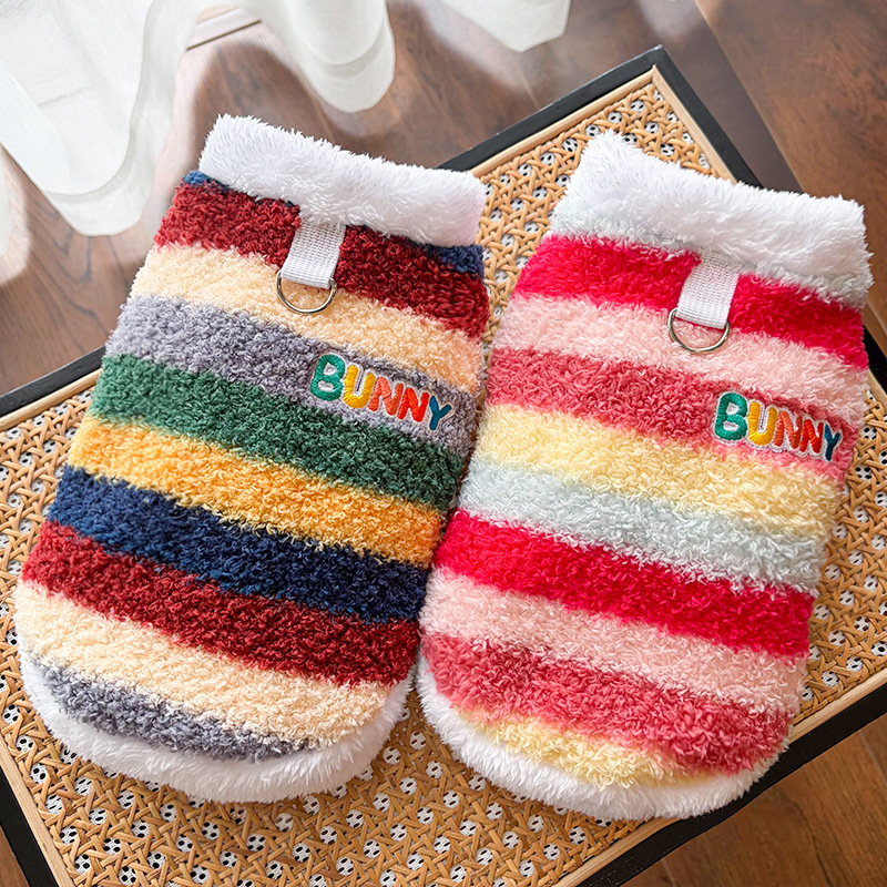 Cozy Rainbow Striped Fleece Pet Coat-Keep Your Pet Warm & Adorable!