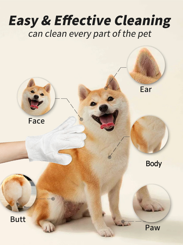 Oversized 10x9 inch glove wipes make it easy to clean your pet’s fur, paws, ears, butt, and more — no water needed.