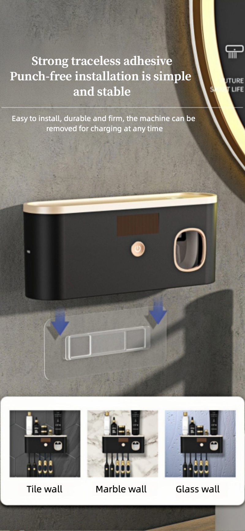 Easy Installation: Features strong traceless adhesive backing for drill - free installation. It is suitable for walls made of tiles, marble, glass, etc. The adhesion is firm, capable of bearing a weight of 15 kg.