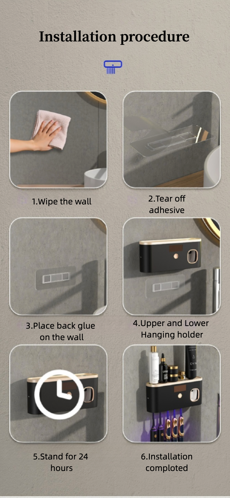 One - button Operation: One - button start for 5 - minute long - acting sterilization, 360° purification of the toothbrush head, safeguarding the oral health of the whole family.